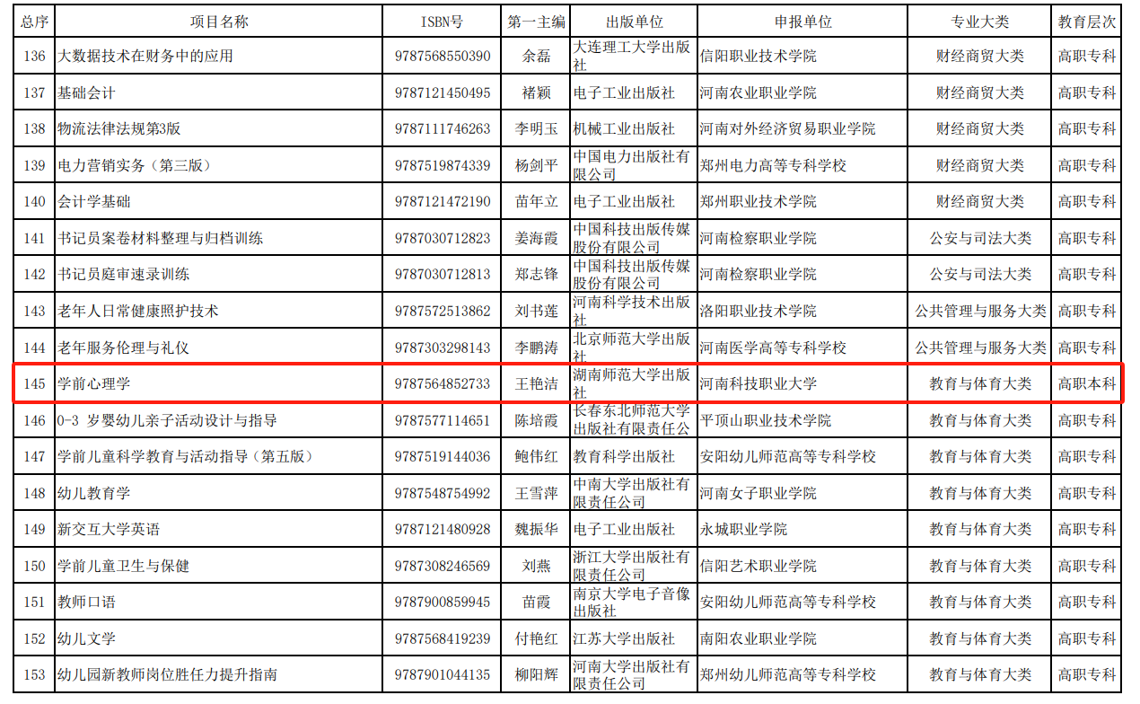 我校王艳洁老师的《学前心理学》入选第二批“十四五”职业教育国家规划教材推荐名单。