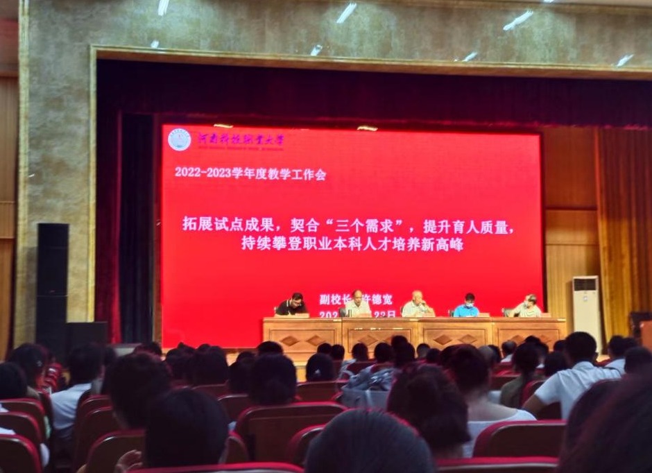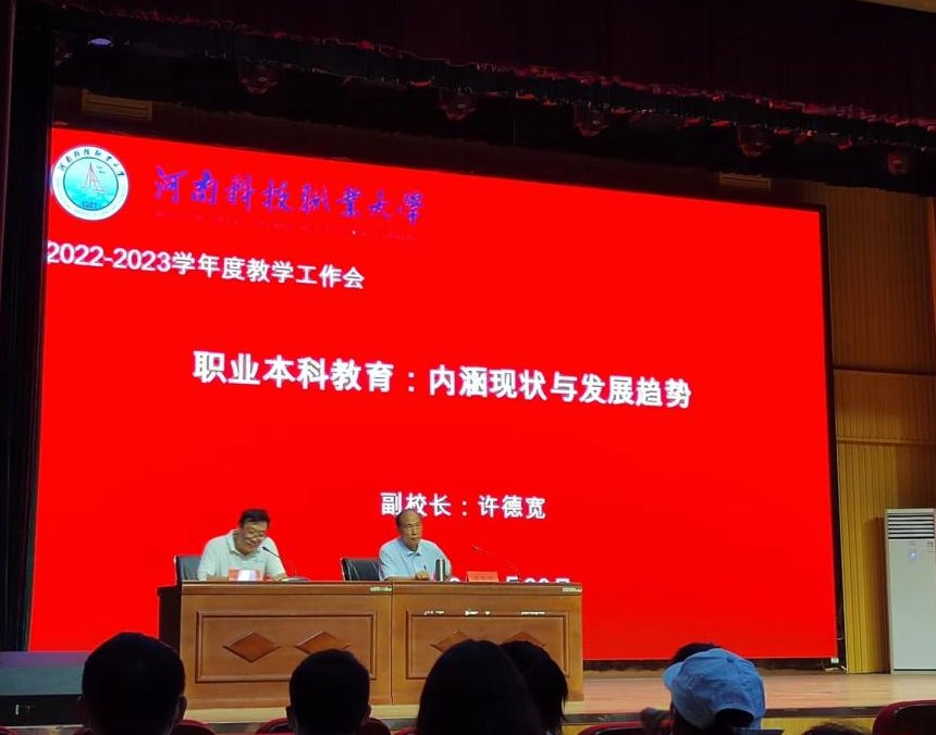许校长要求本学年度需要做好以下重点工作。首先重点解决课程改革问题,第二制定(修订)19个职业本科专业课程标准,第三制定2023版专业人才培养方案,第四完成部分职业本科专业申报,第五完善教学工程建设,第六培育教学成果等工作。